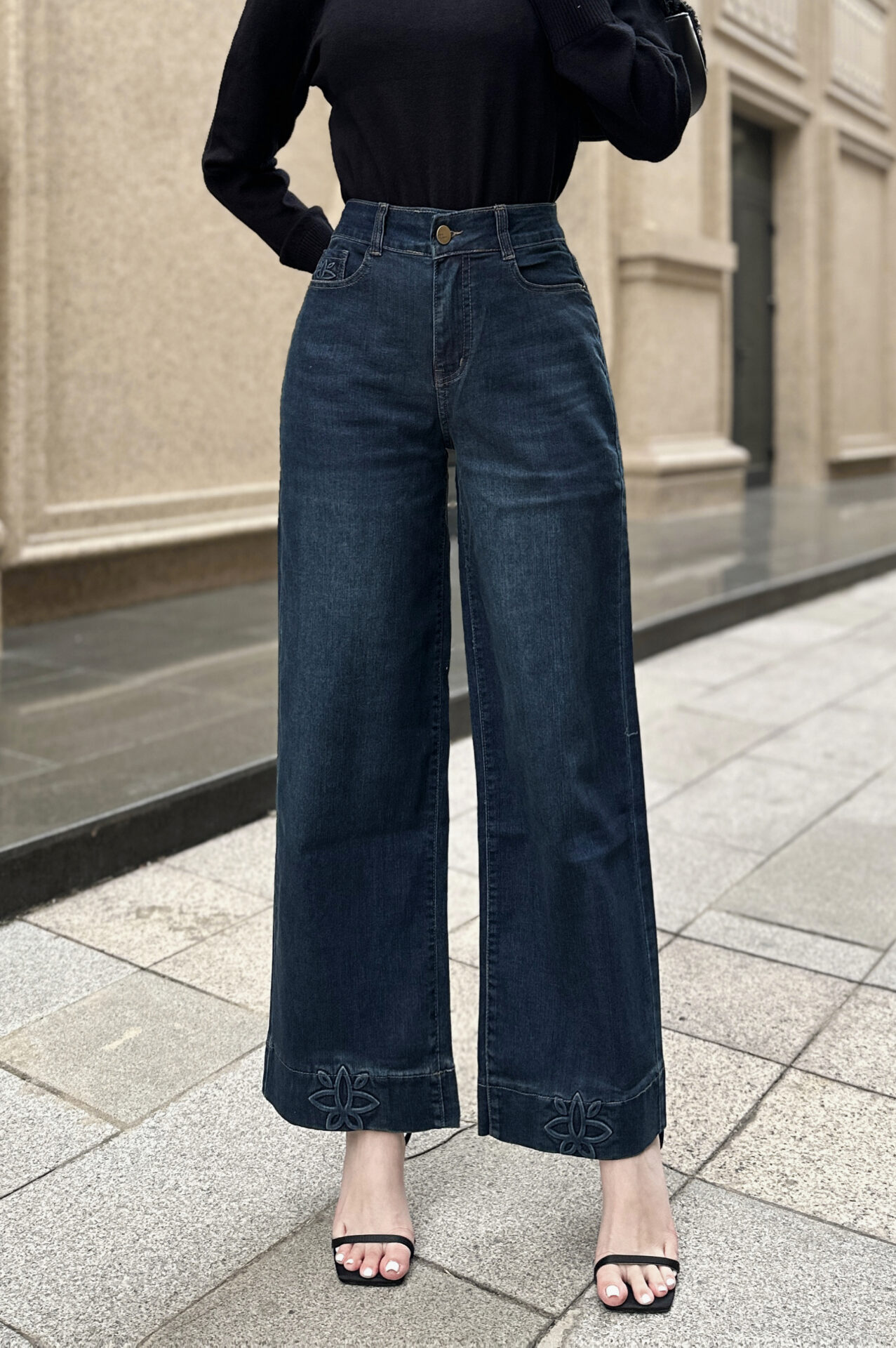 Họa tiết thêu gấu: Điểm nhấn nổi bật với đường thêu tinh tế ở phần gấu quần, giúp bạn luôn nổi bật giữa đám đông.