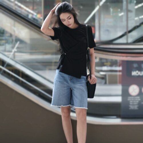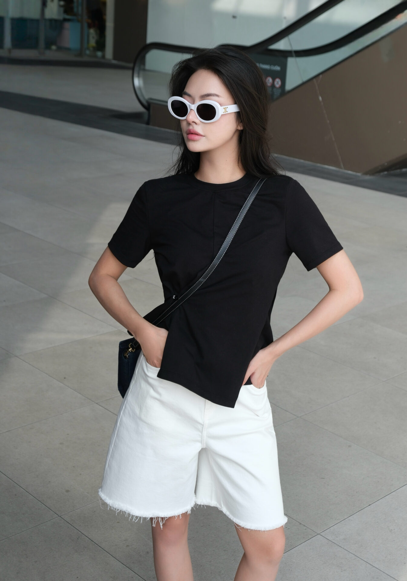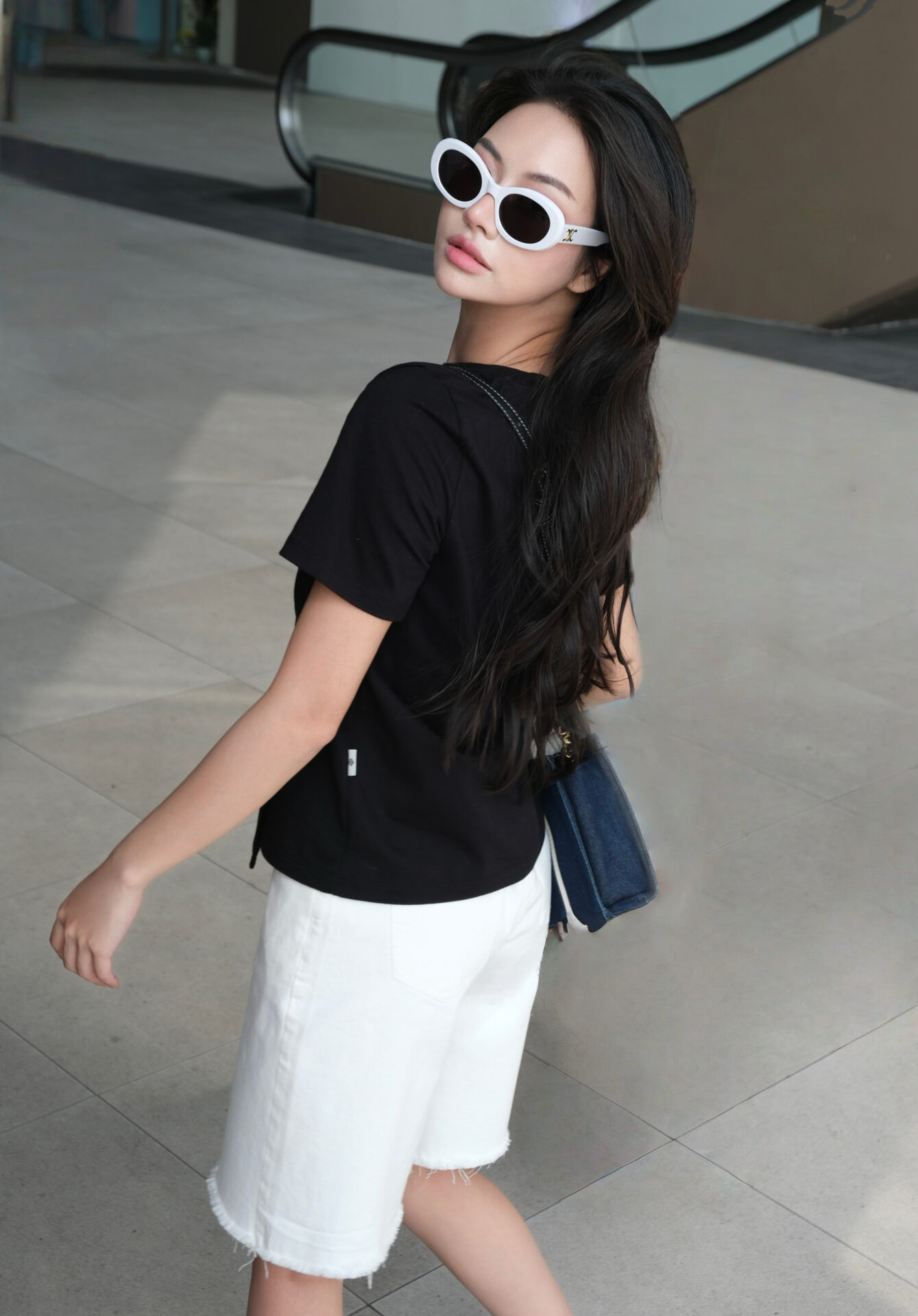 Quần sooc jeans ngố tua gấu – mã 722606 là mẫu quần ngắn cá tính, form ngố dài qua đùi dễ mặc, dễ phối đồ. Gấu tua nhẹ tạo điểm nhấn trẻ trung, năng động. Chất liệu jeans mềm, đứng phom, mặc thoải mái. Có đủ màu: đen – trắng – xanh đậm – xanh nhạt; size 26–30 – phù hợp mặc đi chơi, đi học, du lịch.
